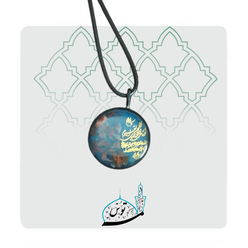 این گردنبند زیبا از رزین شفاف و مقاوم ساخته شده و آیه مبارکه آیتالکرسی با خطی دقیق و هنرمندانه در کنار برگهای طبیعی تزیین شده است.