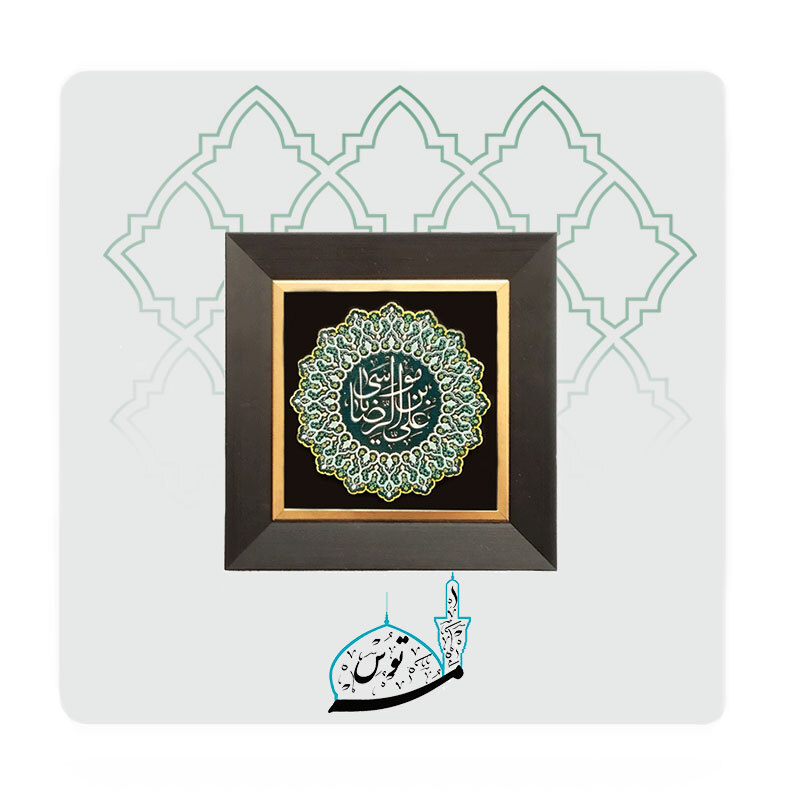 قاب نام مبارک حضرت علی ابن موسیالرضا(ع) با طرح میناکاری بهعنوان یک عنصر دکوری، میتواند بهخوبی با سایر عناصر دکوراسیون هماهنگ شود و جلوهای خاص به محیط شما ببخشد.