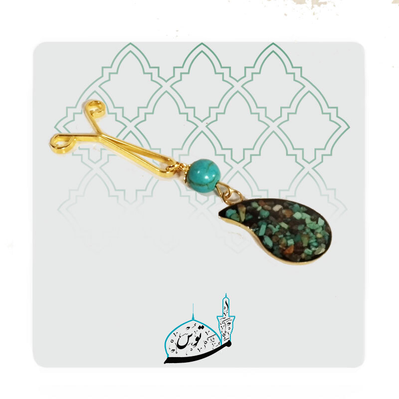 گیره روسری با نگینهای سنگی فیروزه طرح جقه